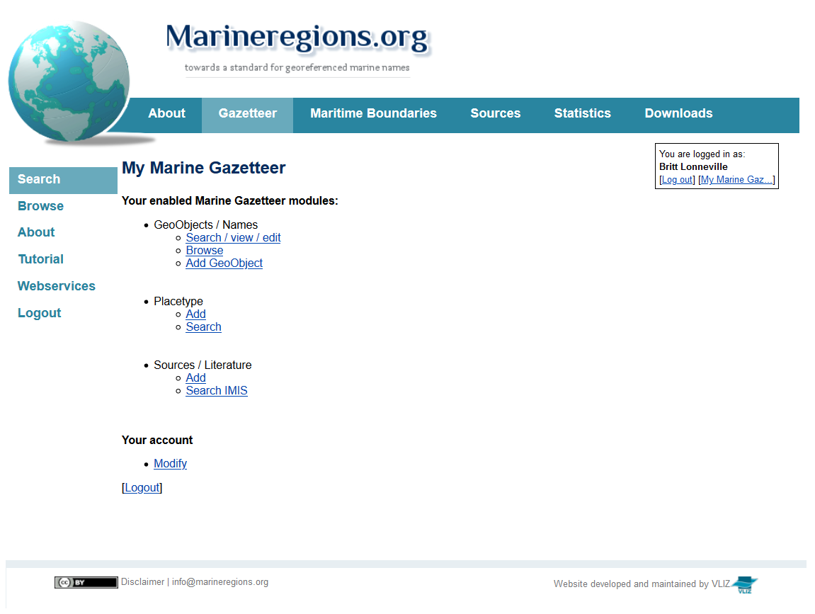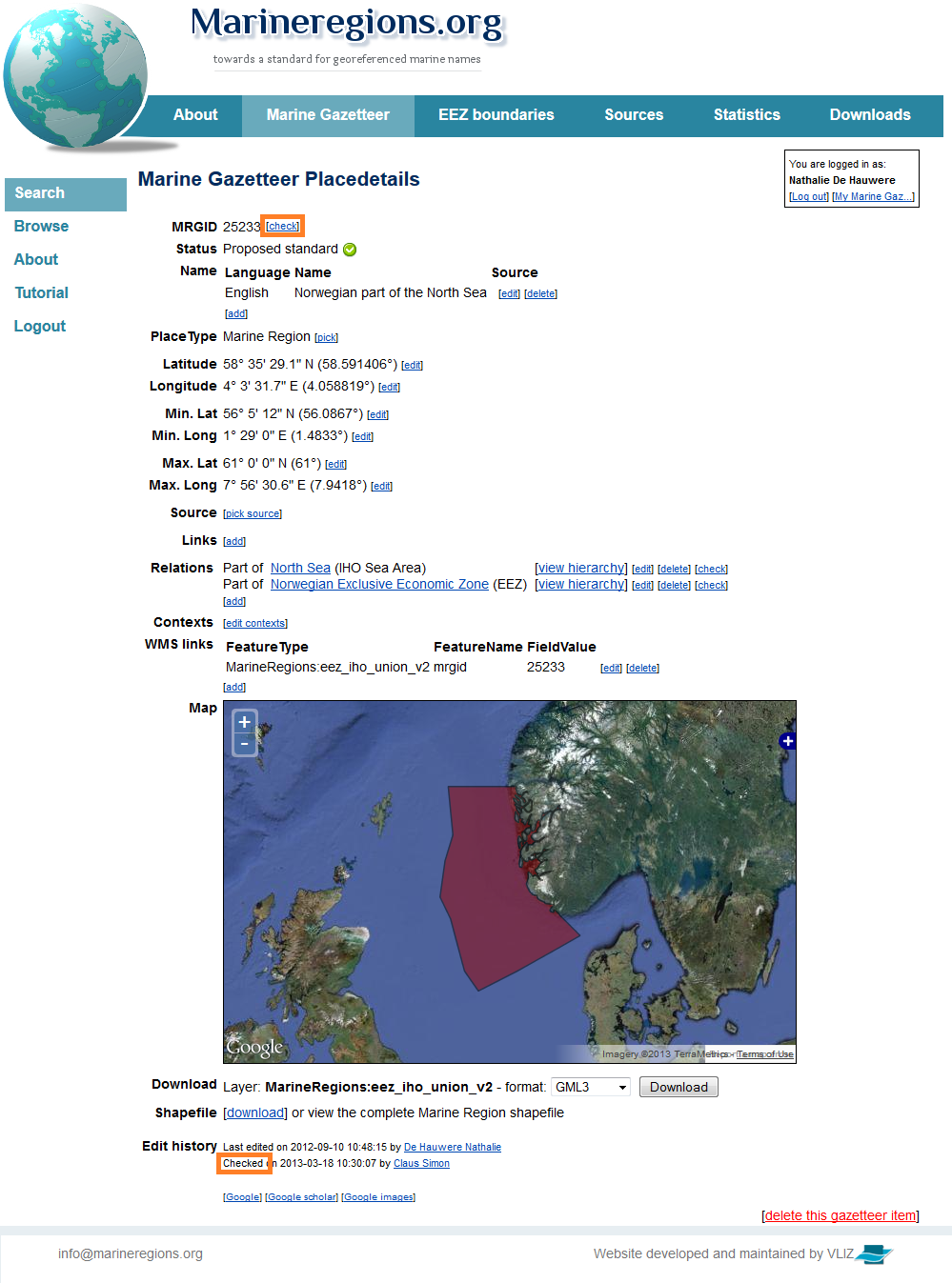 - Search/view/edit: to search the MarineRegions gazetteer,